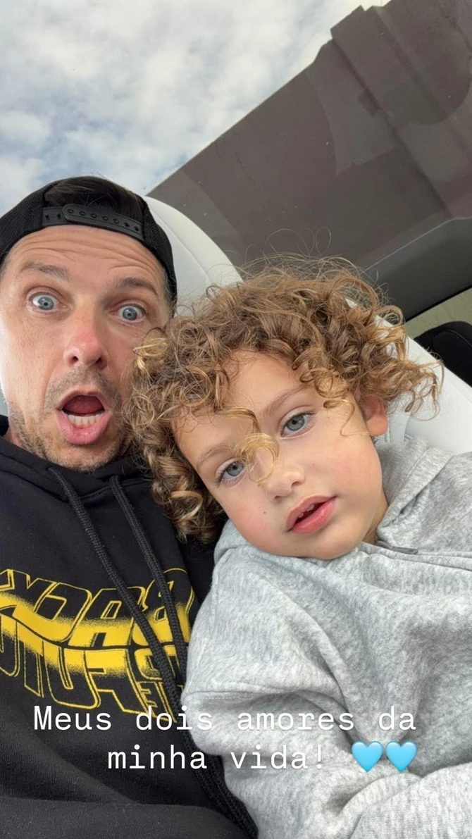 "Две љубави мог живота", написала је Адријана Лима уз фотографију, нешто најслађе што ћете данас видети. Тата је направио смешну гримасу, али – није он у првом плану, већ дечак са неодољивим светлосмеђим локницама и очима рајске боје тропских мора.