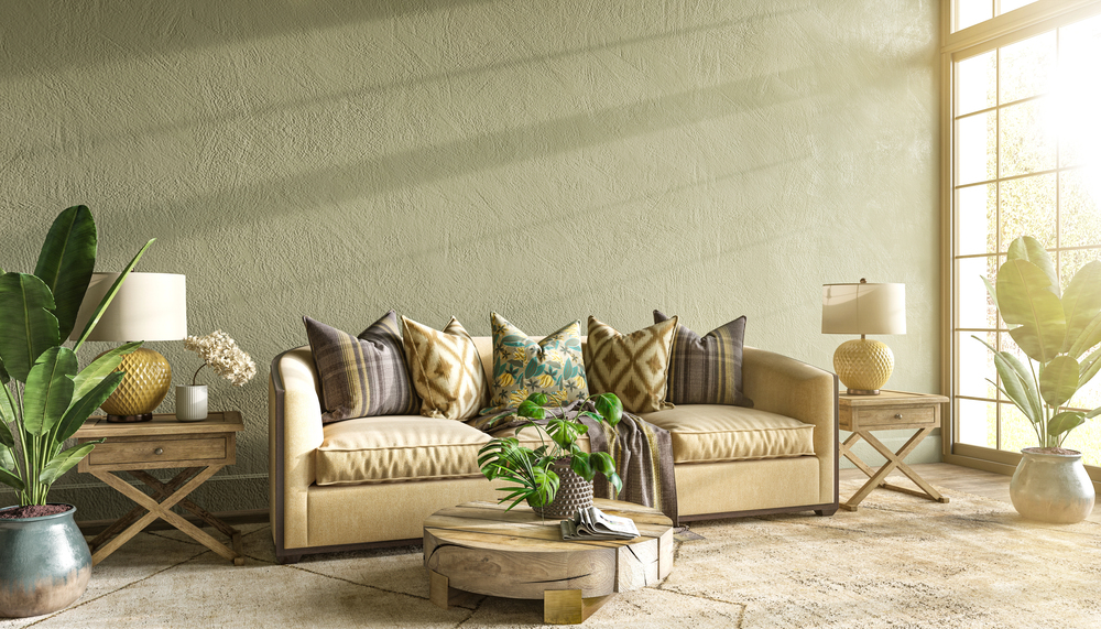 Избегавајте потпуно усклађивање биљака и саксија распоређених по дневној соби. Избор различитих нијанси или боја додаје интересовање и природну атмосферу. Постоји много упечатљивих нијанси зеленог лишц́а које можете изабрати, а боја не мора да долази само од сезонског цвец́а. Нијансе које су у контрасту са главном бојом зидова дневне собе добро функционишу.