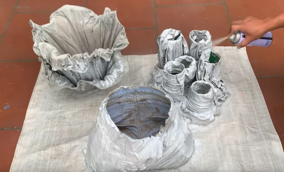 Од старих фармерки може да се направи лепа саксија. Фармерке исеците као панталонице и ушијте ногавице. Остатак ногавица не бацајте. Следећи корак је да напуните фармерке песком. У лавору помешајте цемент (ређи), па четком премажите фармерке. Оставите да се добро осуше.