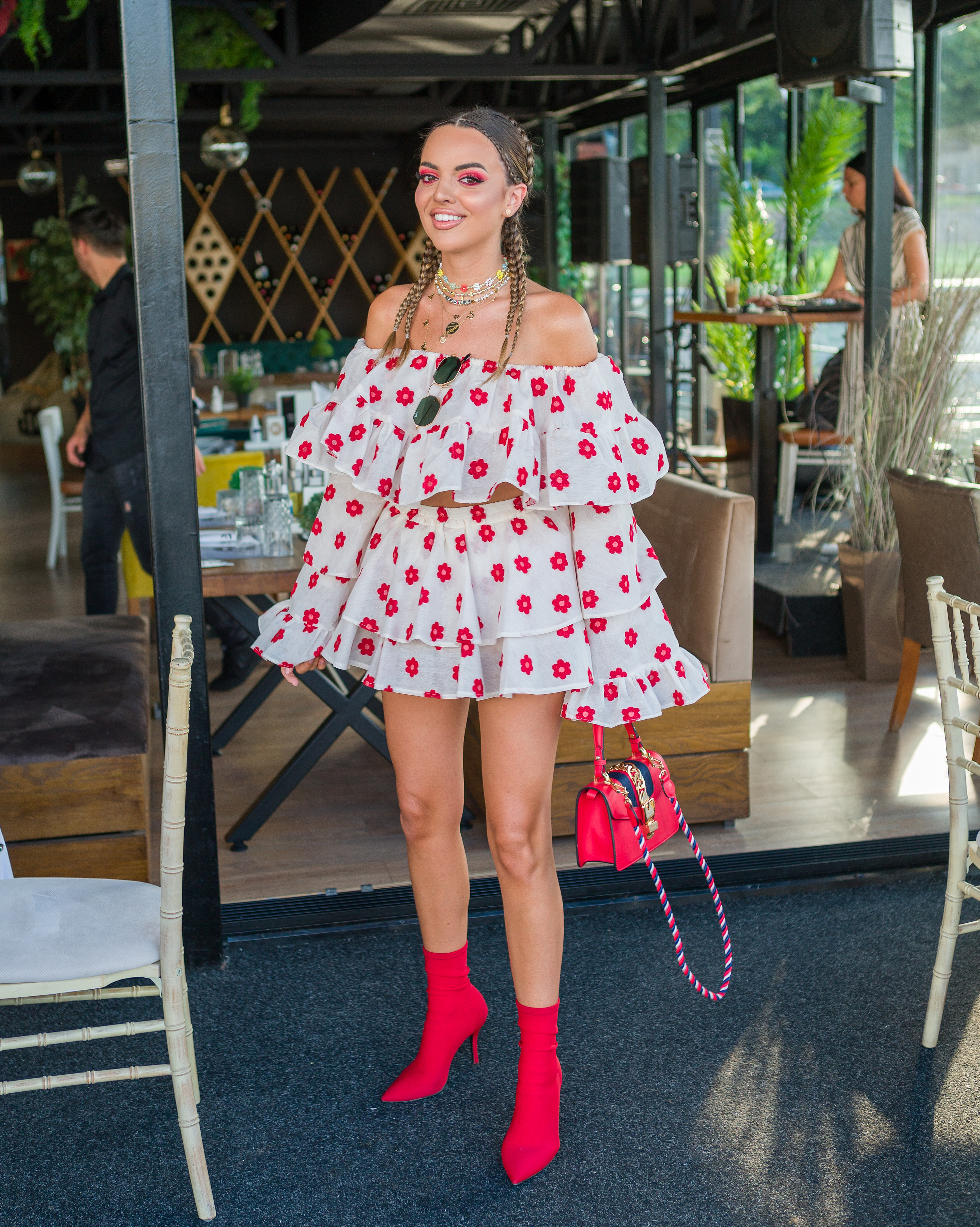 Софија Шашић присуствовала је синоћ једној прослави на једном сплаву реци Сави, који је између осталог ореганизовала славна манекенка Ивана Становић. За ту прилику одабрала је прави летњи, лепршави комплетић сачињен од кратке топ мајице и мини сукњице.