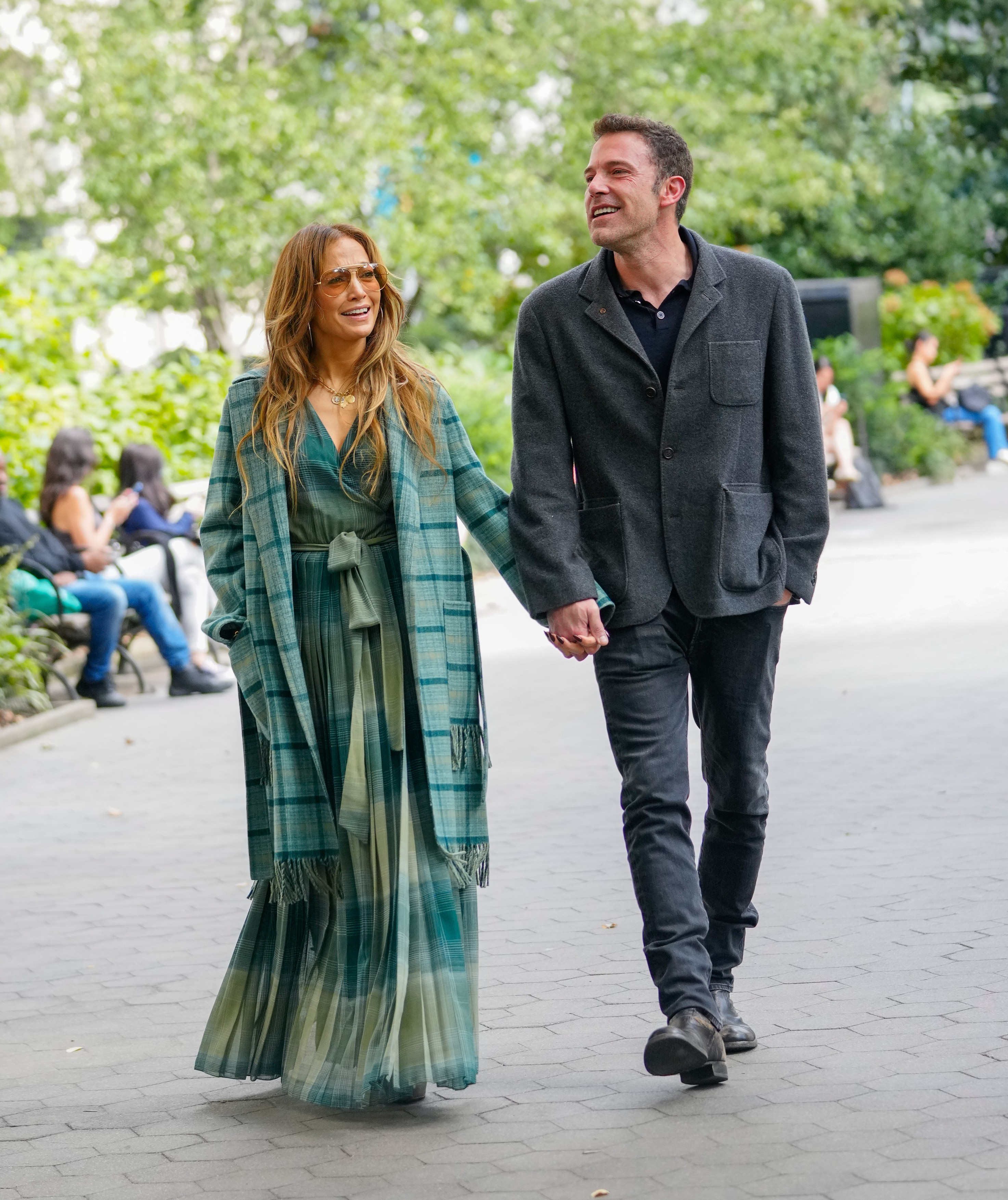 Видно заљубљени пар фотогафисан је током викенда. Џенифер Лопез је носила елегантни карирани капут у зеленој боји и одговарајућу дугу хаљину.