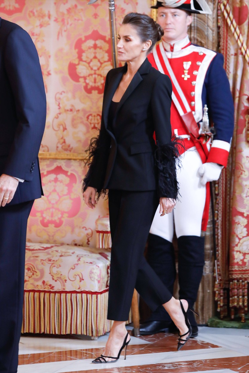 Познато је да Летиција воли салонке, али како је њен стајлинг сада екстравагантан због перја понела је необичне ципеле - провидне салонке.