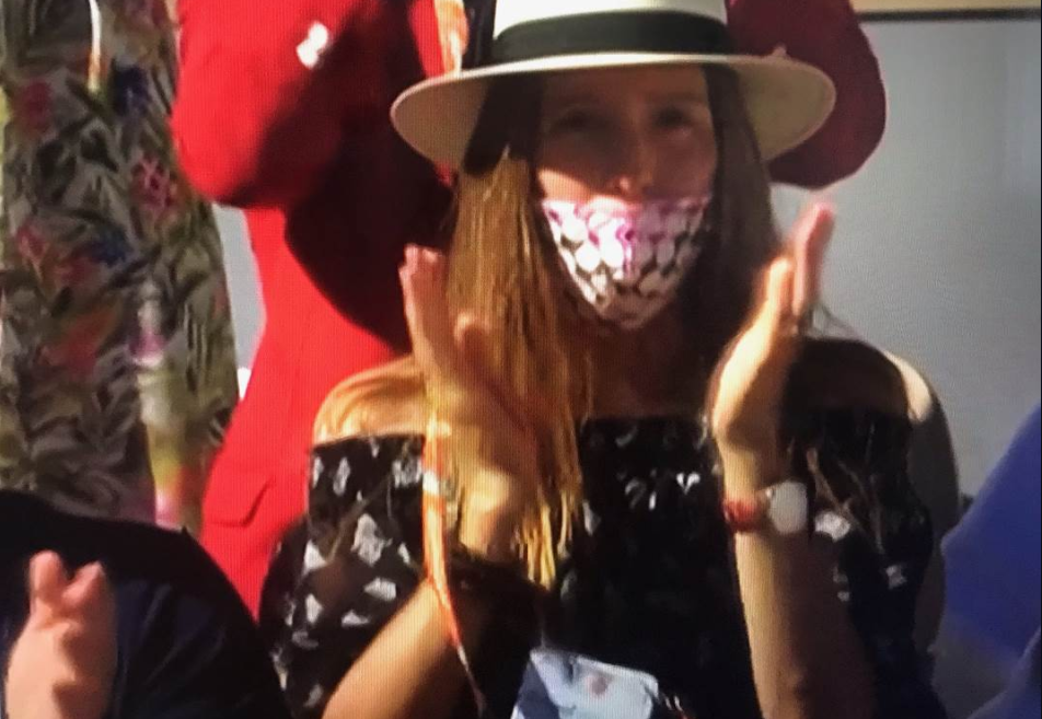Још један модни детаљ који сви модни стручњаци препоручују за лето, Јелена је уклопила са хаљином. Понела је бели модел шешира, са средњим ободом и црном трагом и тиме испоштовала монохроматски тренд.