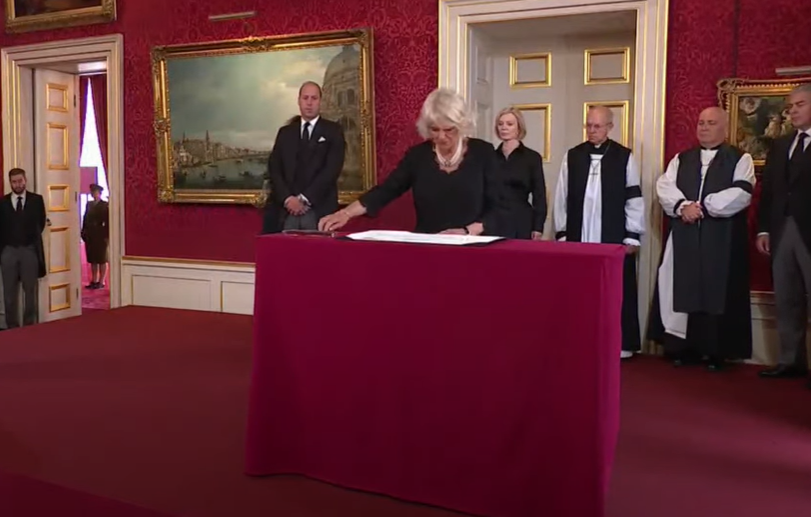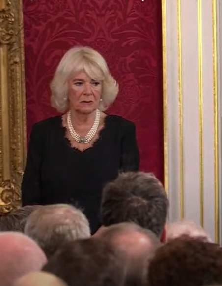 Његова супруга Камила била је видно потресена због краљичине смрти, али се трудила да да подршку свом супругу.