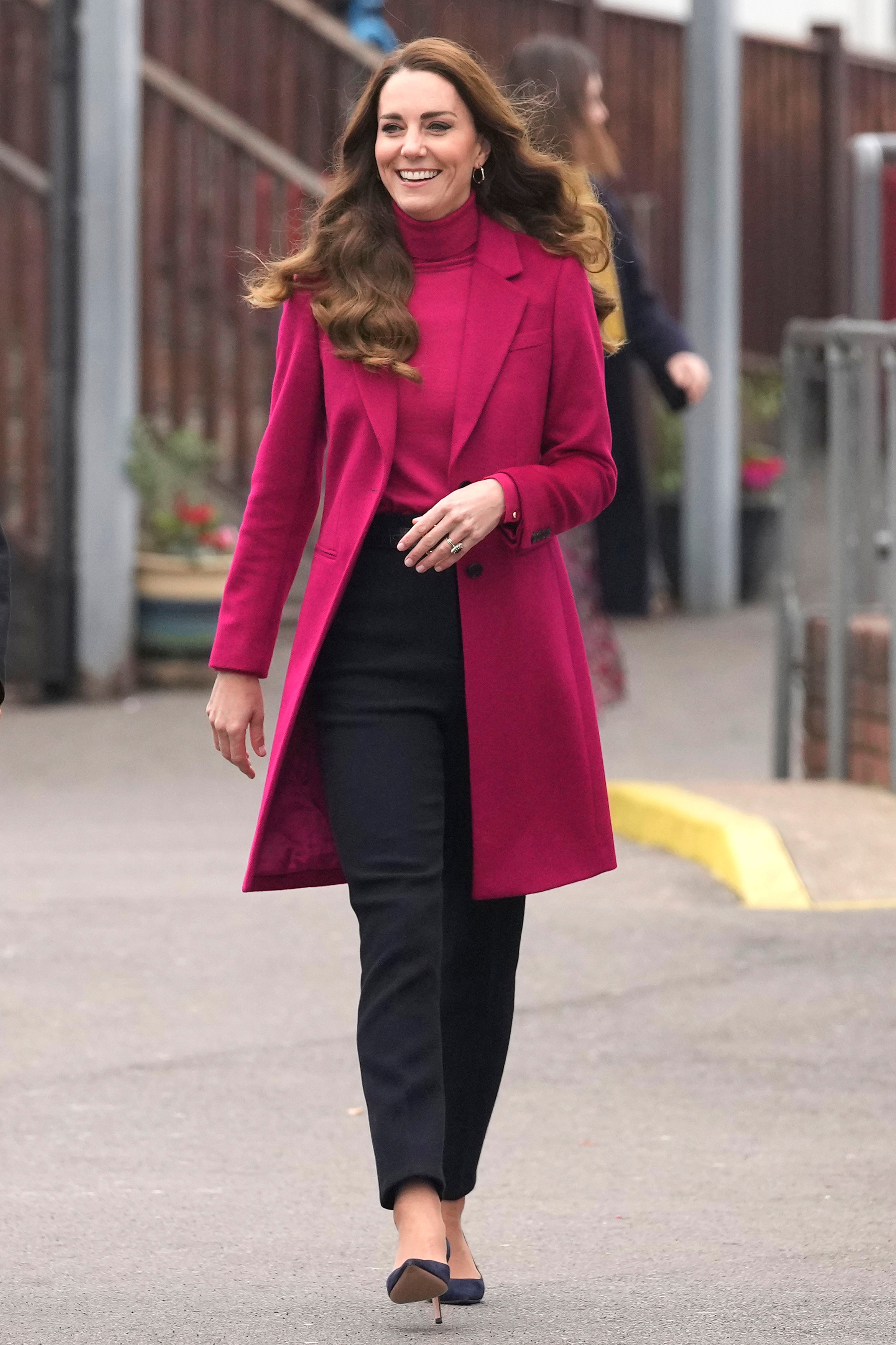 Кејт је понела ролку и црне, овог пута уже, панталоне. Изгледу је додала капут у истој боји у којој је и ролка, а за обоћу одабрала неодољиве класичне црне салонке.