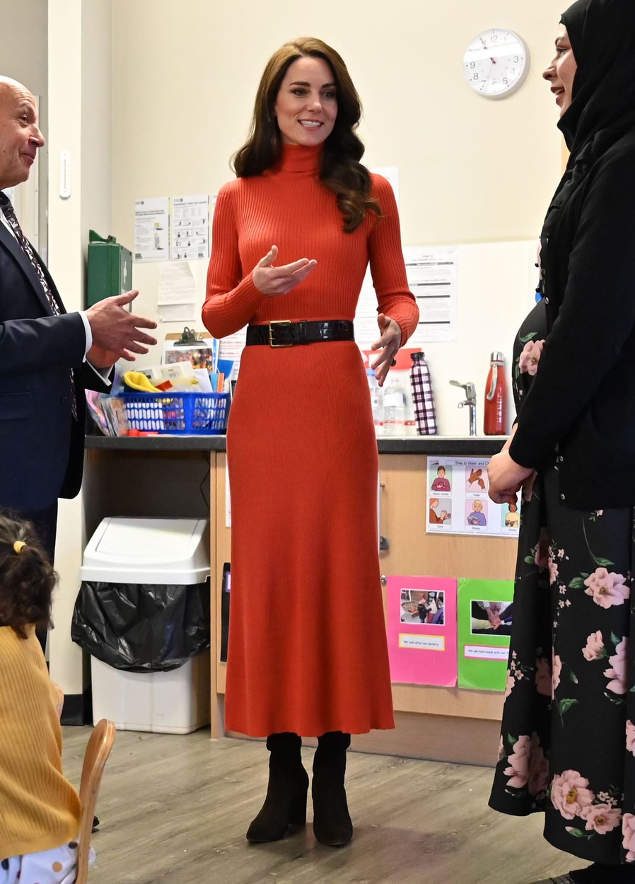 Кејт је посетила вртић, а појавила се у једној од највеселијих боја. Принцеза носи наранџасту хаљину миди дужине. Ово је прави зимски модел хаљине, има ролку и дугачке рукаве, па је савршено решење када желимо да будемо елегантни, а да нам у исто време буде и топло.