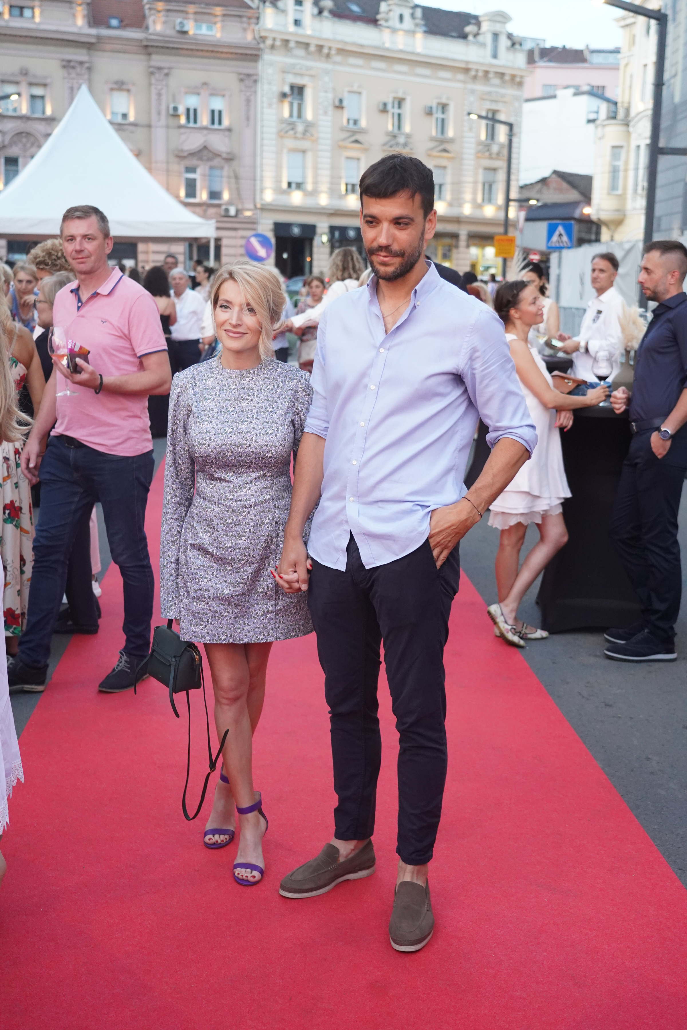 Анђелка је синоћ купила погледе, држећи за руку партнера Марка. Глумица само неколико недеља након порођаја може да се похвали сјајним изгледом. Носи мини хаљину дугачких рукава са шљокицама, коју је упарила са љубичастим сандалама са потпетицама и црном ташном. Косу је подгила у опуштену пунђу, док са лица није скидала осмех.