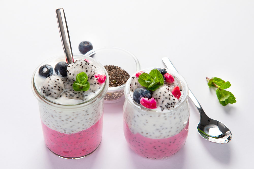 Pomešati jednu čašu bobičastog voća sa ledom, 240 ml punomasnog grčkog jogurta i 1 kašiku protein od vanile.