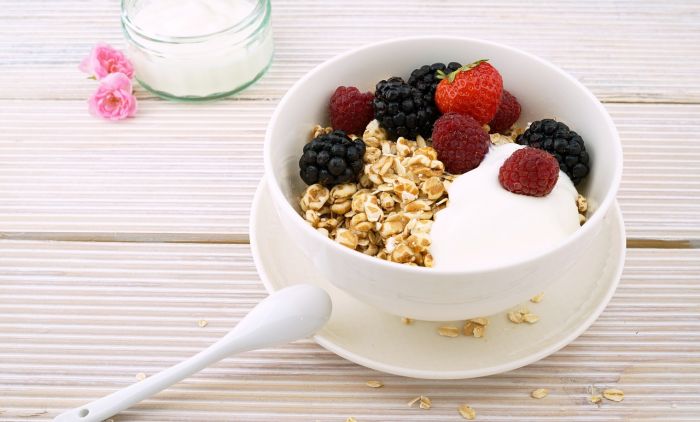Doručak i ručak: jogurt pomešajte sa jednom šoljom (oko 90 grama) celih žitarica i porcijom voća