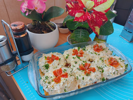 Skuvati dva jajeta, pa ih, kad se prohlade, izrendati u činiju. Dodati rendan sir i pola kačkavalja, Ubaciti pavlaku, jogurt, malo soli i bibera. Dodati bosiljak i peršunov list, i na kraju peršun seckan. Sve izjednačiti. Ja sam kao prilog dodala krompir na kolutove.