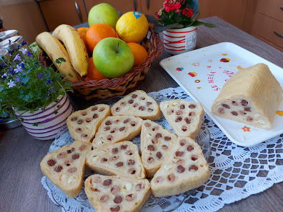 Preko rolnica ide krem pa 3 rolnice, zatim krem pa dve rolmice, krem i jedna rolnica.