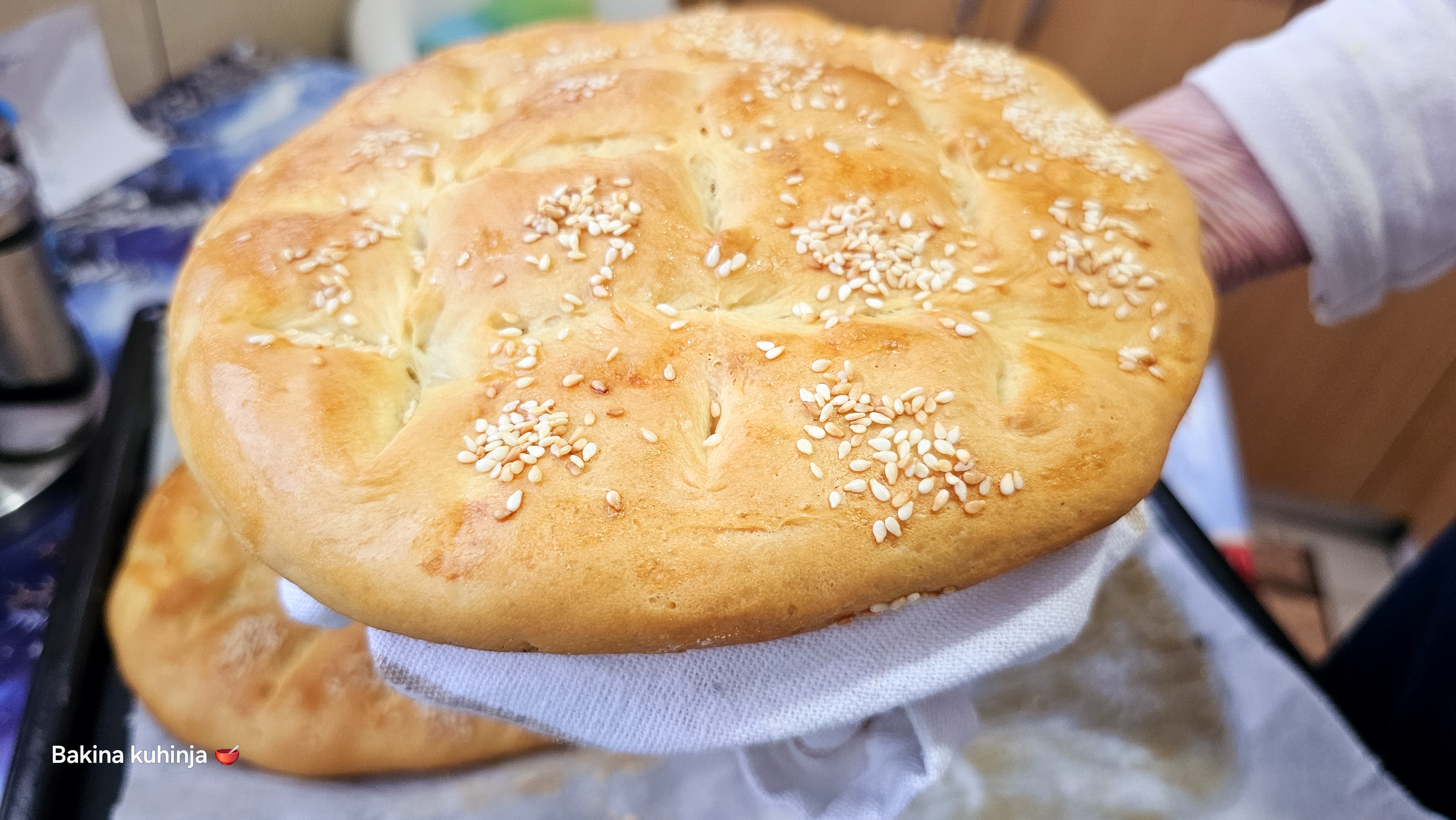 Nožem malo zaseci i peci na 220 stepeni C 20 -30 minuta. Slžiti tople.
