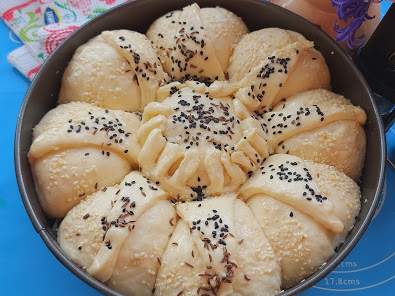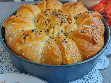 Pokriti da odmore pa premazati uljem i posuti semenkama i krupnom solju. Peći na 200 stepeni oko 45 min. Pokriti da omekne Uživajte!