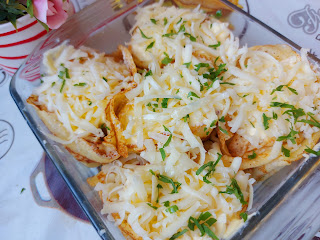 Puniti ostatkom nadeva odozgo obilno narendati kačkavalja. Peći u rerni na 220 stepeni C oko 20 minuta.