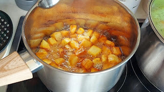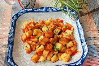 Krompir očistiti i iseći na kockice, osušiti krpoem i pospliti i promešati . Sipati u manju šerpu ulje bar za prst pa kad se dobro zagreje sipati kockice krompira.