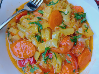 Ubaciti sečen paradajz. Kad omekne sve posloliti, pobiberiti i naseckati peršunov list. Naš džumus sataraš je gotov.