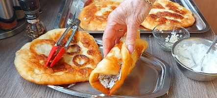 1-2 kašike kisele pavlake i 3.4 čena seckanog belog luka izmešati. Dodati po želji origano biber i sl i time premazivati lepinje.