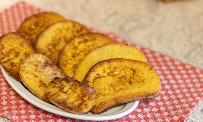 Kriške hleba uzmite i isecite ih po sredini. Ulje sipajte u tiganj i zagrejte ga. Jaja umutite u činiji i dodajte prstohvat soli. U to dodajte sodu i kiselo mleko i sve dobro promešajte. Čim se ulje zagreje kriške hleba potapajte u smesu i pržite dok ne dobiju zlatnu boju.
