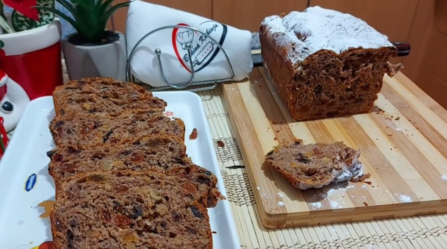Kad nadođe sipati u vanglu, dodati jaje, mleko, ulje, seckan maslac, koricu limuna, muskatni oraščić, brašno, so, a zatim suvo voće sečeno na kockice.