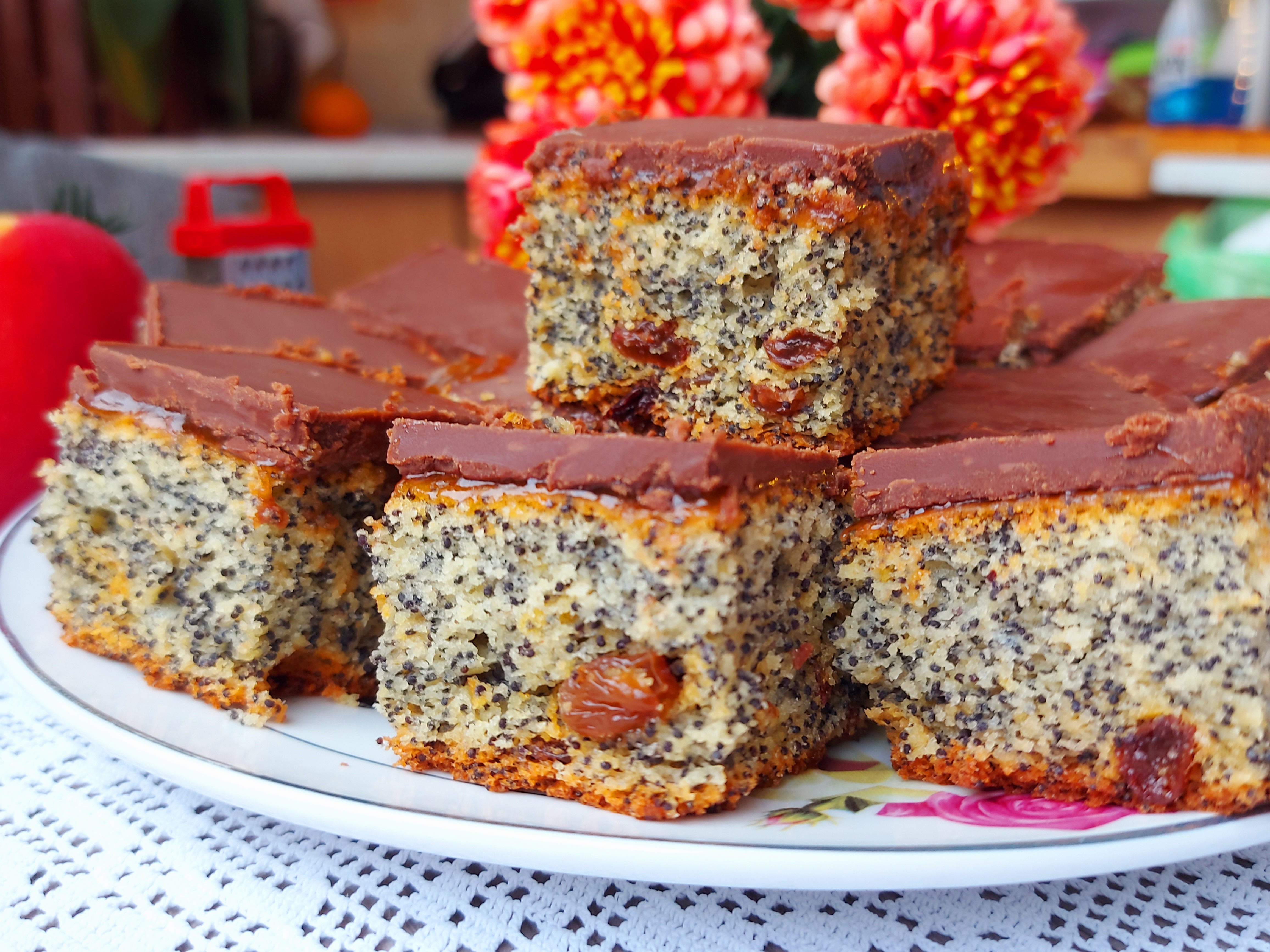 Umutiti jaja sa šećerom, dodati brašno sa praškom za pecivo prosejano (obavezno). Dodati ulje, jogurt, cimet mak i sve dobro lagano izmešati. Pleh 30x25 obložiti pek papirom i izliti testo ravnomerno malo protresti.