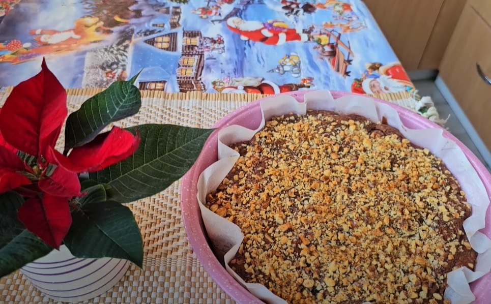 Odozgo sipati seckane orahe. Peći na 200 stepeni C oko 40-45 minuta
