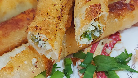 Koru preseći po širini. Sir izdrobite dodajte seckan luk ili bareni seckan spanać može i jedno jaje.