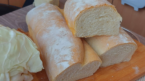 Dodavati ostatak brašna i mesiti dok se ne dobije tvrđe glatko testo da se ne lepi. Podeliti na dva dela, razviti malo i uviti u rolnicu. U dugačak pleh poređati listove svežeg kupusa i staviti rolnice hleba, pobrašnjiviti ih i pokriti krpom da se udvostruče.