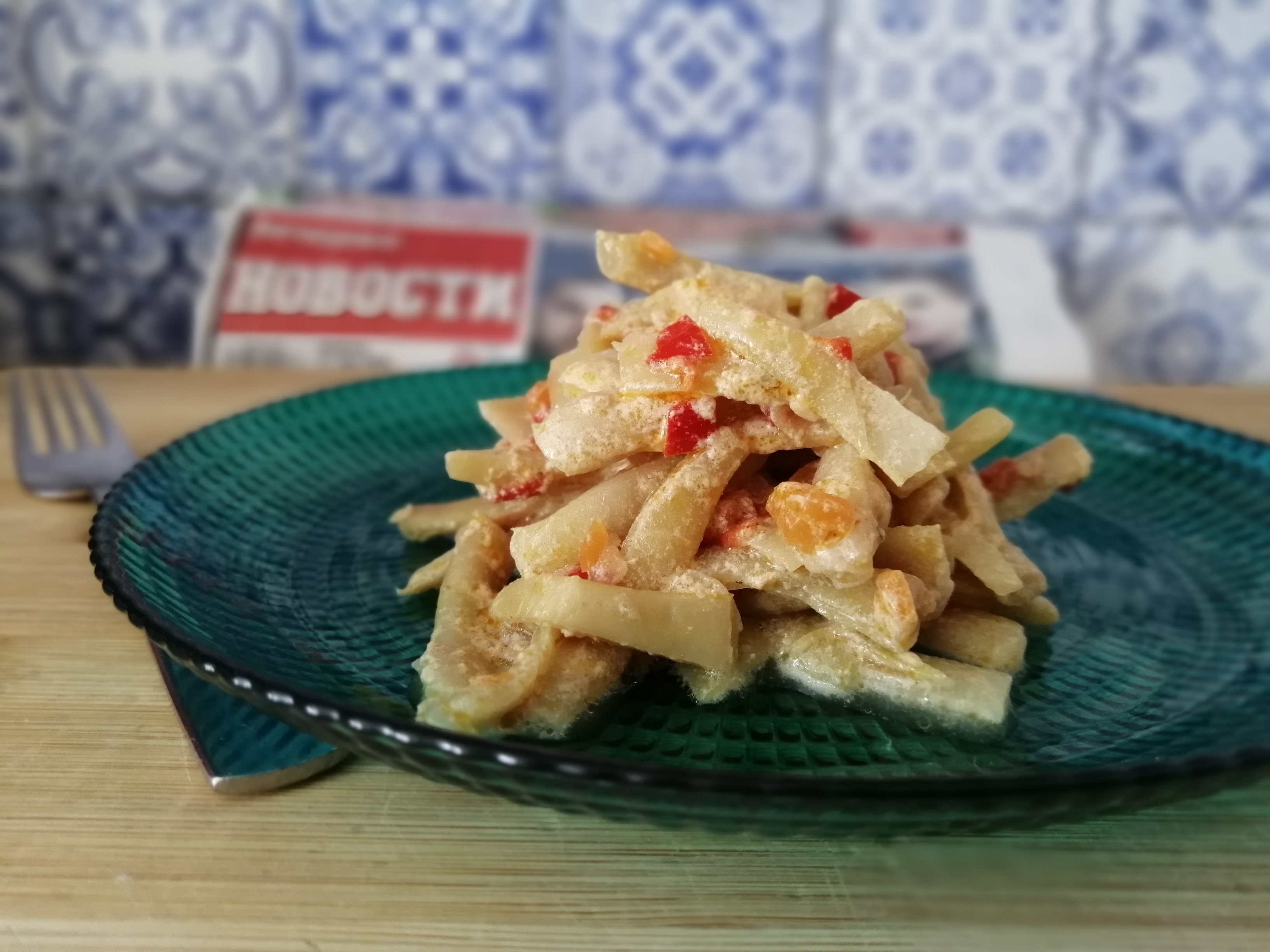 Boranija se opere i očisti tako što se iseku krajevi, zatim preseče po dužini, pa na tri dela. Iseče se crni luk na kockice. Šargarepa se očisti i iseče na kockice. Paprika se, takođe, opere i očisti od semenki i iseče na kockice. Paradajz se oljušti iseče na sitne komadiće.