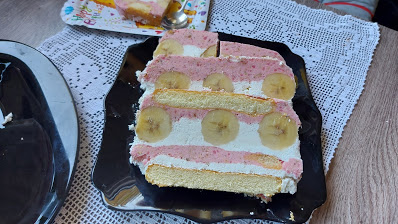 Preko pudinga staviti nasečene banane zatim umućen šlag, a zatim piškote, puding šlag i piškote.