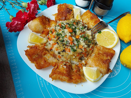 Filete soma iseći na komade, pa je malo krpom osušiti i upiti višak vode. Posuti sa belim lukom u granulama. Na foliju staviti 2 kašike kukuruznog brašna 1 hlebnog po želji suvog začina i soli mlevene paprike crvene i sve izmešati. Kroz to dobro provući i pritisnuti ribu sa svih strana.