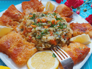 Pleh obložiti uljem, pa svako parče umočiti u ulje u tepsiji sa jednom stranom, i ređati jedno do druge. Na kraj istresti pirinač pa rasporediti. Peći na 210 stepeni C oko 25-40 min da se lepo zarumeni u zavisnosti od rerne. Fantastično zaista!!!