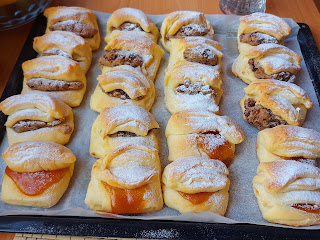 U svaki staviti kašičicu ml oraha i preklopiti, Malo ostavit i za džem po želji. Poklopiti folijom i krpom pa odmoriti 15 min.