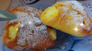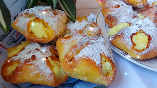 Peći na 200 stepeni, 30-40 minuta da porumeni. Posuti prah šećerom i vanilin šećerom. Pokriti malo krupom pa poslužiti. Mekane, kremaste, mirisne jako dobre.