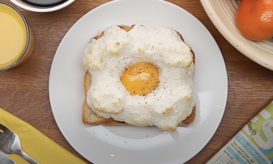 Zagrejte rernu na 230°C. Odvojite žumanca od belanaca. Sačuvajte žumanca za kasnije. Mikserom mešajte belanca na velikoj brzini dok se ne formiraju mekani vrhovi. Posolite i pobiberite. Belanca izlijte u pleh i napravite udubljenje u sredini, da žumanca kasnije uđu u centar. Pecite 8-10 minuta. Ubacite žumanca u belanca i pecite još 3 minuta. Poslužite na tostu ili sa prilogom po želji.