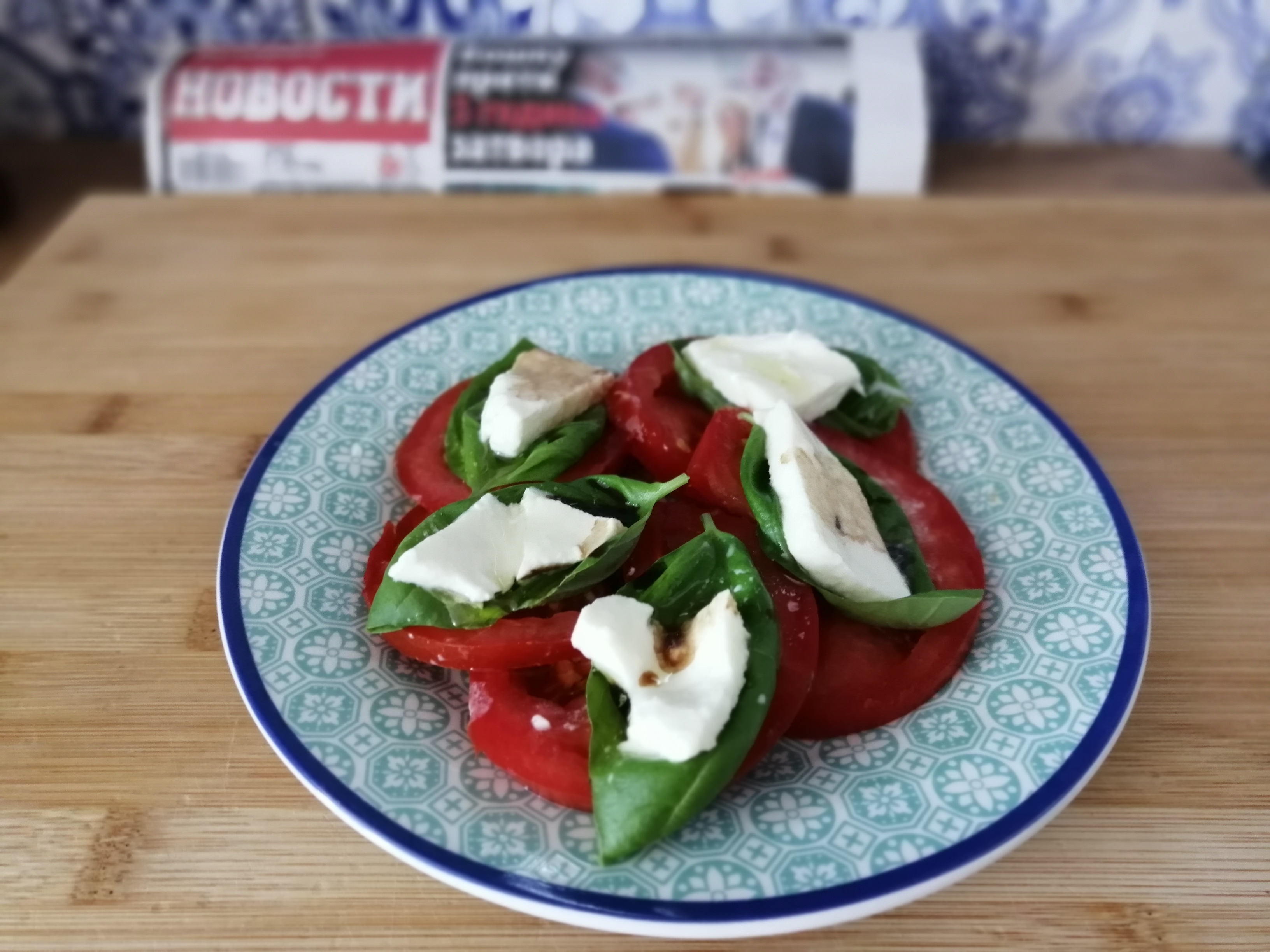 Paradajz se opere i iseče na kolutove, ni debele ni tanke, već debljine pola santimetara. Odaberu se lepi listovi bosiljka i na svaki kolut paradajza se stavi po jedan list. Mocarela se, takođe, iseče na kolutove ne deblje od paradajza. Mocarela se naređa na bosiljak.