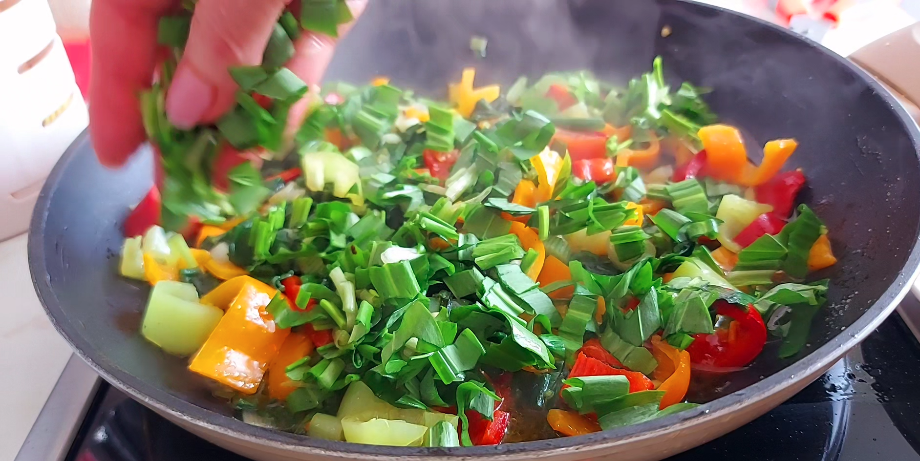 Iseckati crni lik pa ga propržiti , dodati sečenu papriku. vezu srembuša. isečenog paradajz i pržiti da ispari tečnost. Dodati baren pirinač, pobiberiti i posoliti. Uzan lčeh premazati uljem. Krir iseći na ranke kolutove poredjati po dnu i obložiti sa strane Staviti pola pržennog luka paprike i pirinča utapkati kašikom pa drugi red listova krompira . Odozgo drugi red nadeva i završiti krompirom.