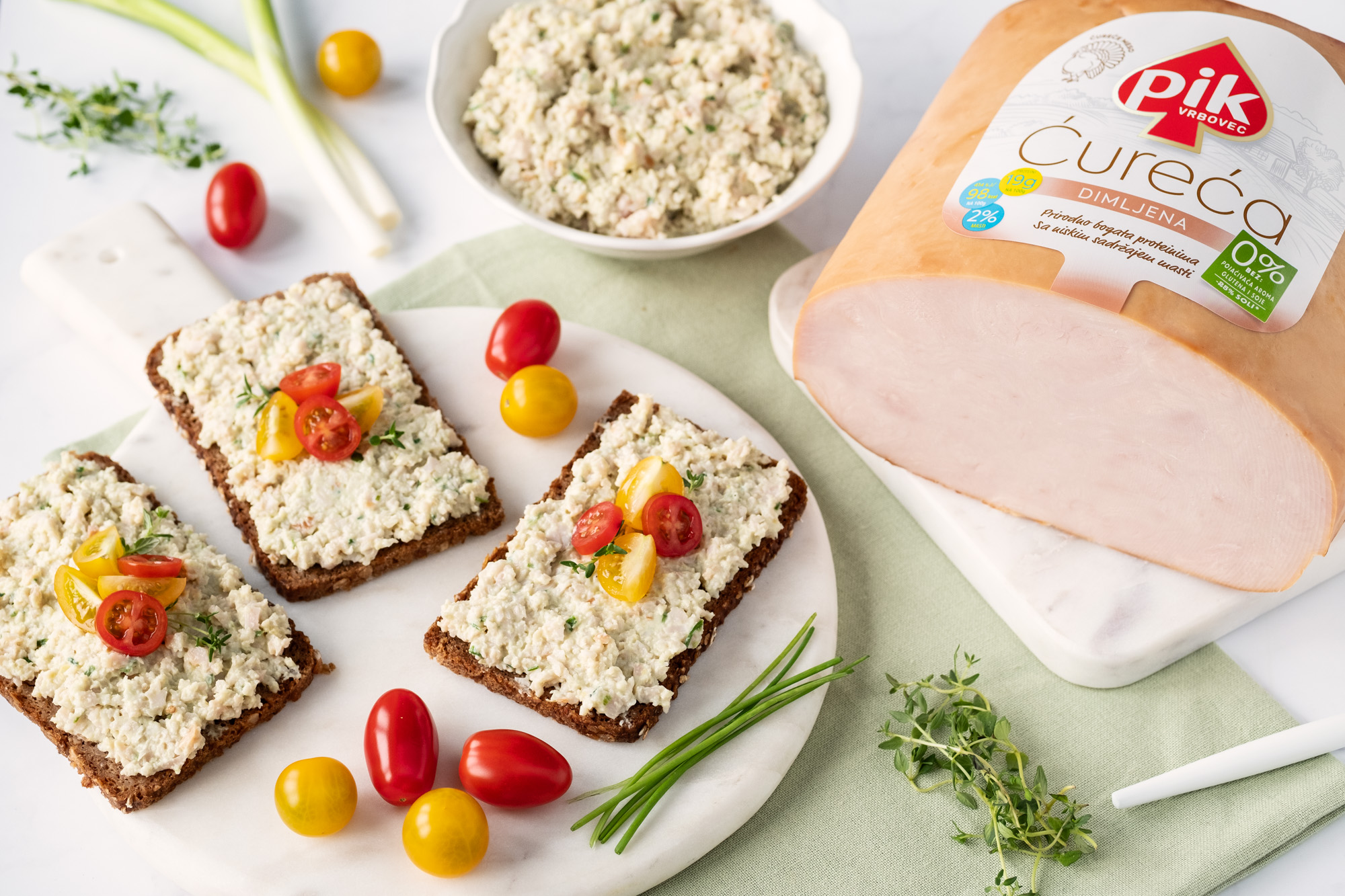 Od sastojaka vam je potrebno: 250 g PIK Ćurećih dimljenih prsa, 220 g posnog sira, 2 kašike avokado majoneza, 2 kašike iseckanog vlašca