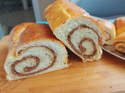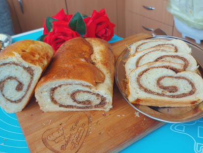 Odmoriti 30 min. pa razviti teso pola cm premazati malo džemom i posuti orasima. Uviti u rolat i staviti u podmazan pleh. Pokriti da odmara 15 min.