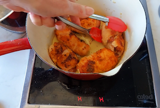 Štapom za blendanje izblendirati. Šnicle izvaditi u tacnu i preliti sosom. Možete posuti peršunovim listom.