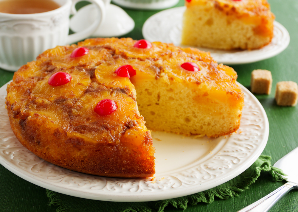 Ananas ocedite, a sok iz konzerve odvojite u posebnu posudu. Omekšali puter pomešajte sa šećerom. Dodajte jaja, umutite malo mikserom, a zatim dodajte jogurt, brašno, vanilin šećer, prašak za pecivo i sve sjedinite mikserom. Premažite puterom kalup za kolač. U šerpici kuvajte sastojke za karamel, pet-šest minuta, kad počne da dobija karamel boju odmah sklonite sa ringle i izlijte na dno kalupa. Preko toga poređajte krugove ananasa, ostatak sitno naseckajte i dodajte u testo. Sipajte testo u kalup preko ananasa i pecite u zagrejanoj rerni na 180 stepeni, oko pola sata, posle 15 minuta smanjite temperaturu na 150 stepeni. Kad je gotovo, nožem lagano odvojite kolač od kalupa. Stavite tanjir preko kalupa i prevrnite ga. Preko vrućeg kolača sipajte sok od ananasa iz konzerve. Služite vruće ili hladno. Kolač možete ukrasiti svežim ili kandiranim voćem.