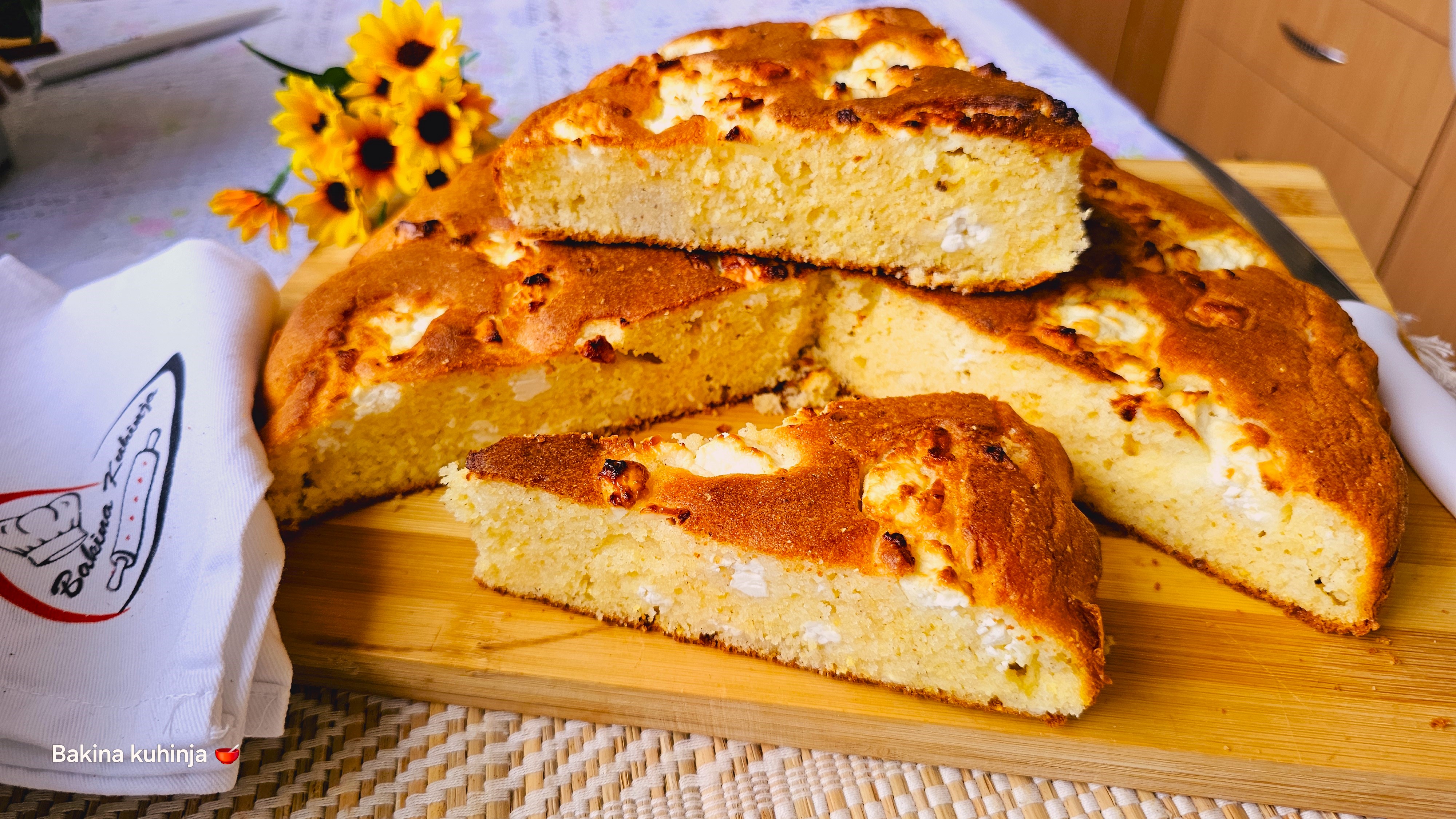 Dodati ulje, jogurt, rastopljen kvasac, pavlaku i pola sira.