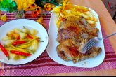 Sipati opet malo bujona, pa kuvati povremeno dolivajući bujon. Blago promešati. Krčkati još 20 minuta. Dodati mlevenu i tucanu papriku. Pred kraj dodati seckan peršun, 3 čena sitno belog luka i punu kašiku pire paradajza. Dodati so i biber. Poklopiti da tečnost ispari. Gulaš bi trebalo da bude gotov za sat i po vremena ukoliko je meso mlado i 2 sata ako je meso malo starije..