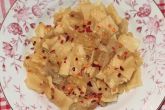 Zamesiti testo i ostaviti da naraste. Istresti na sto pobrašnjiven i oklagijom razvući u pravougaonik.