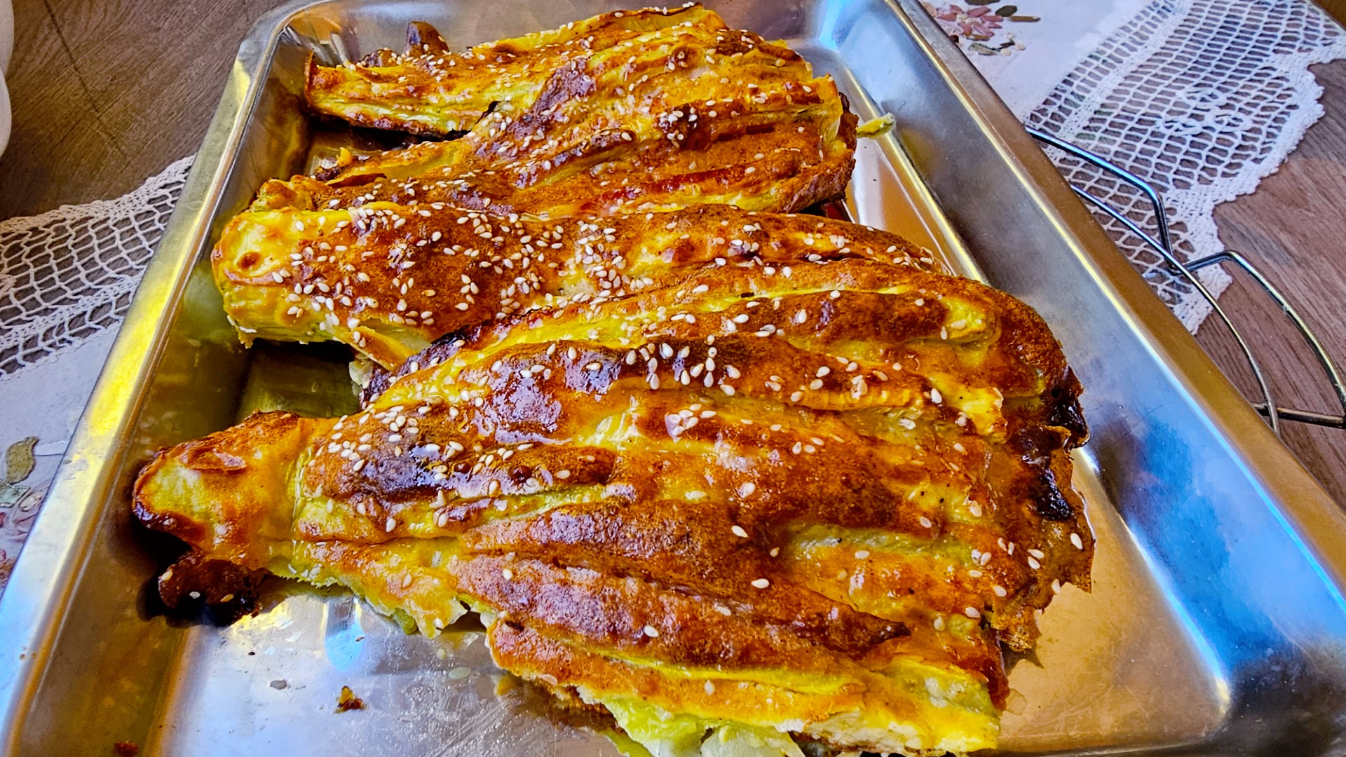 Redjati u pleh obložen pek papirom i premazati uljem . Peći na 220 stepeni C 45-50 min.