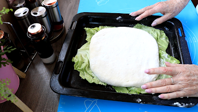 Pokriti folijom i krpom da odmori 10 min. Viljuškom malo izbosti i peći u ugrejanoj rerni oko 40 min na 200 stepeni C.