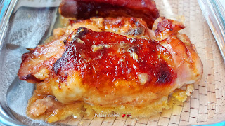 Premazati jos malo soja sosom i posuti solju i i uljem. Peći na 200 stepeni C oko sat vremena. Prijatno