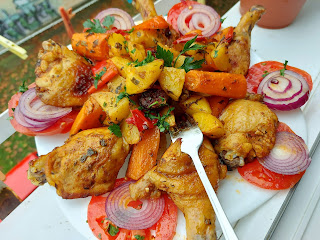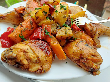 Sve sastojke izmešati, pa premazati meso i poređati u kesu. Kao prilog možete u ostatak marinade naseći krompir, šargarepu i crvenu svežu papriku.