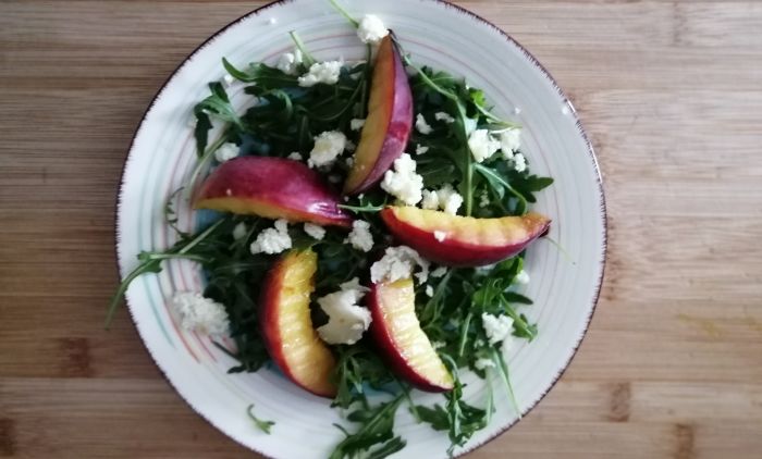Rukola i breskva se odlično slažu, a kada se ovoj kombinaciji doda kozji sir dobija seukusna salata prepuna vitamina.