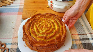 Prvi krug kuglofa premazati pudingo, preklopiti drugim krugo i njega premazati i poklopiti poklopcem zadnji deo.