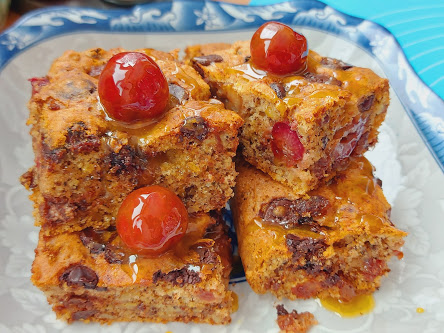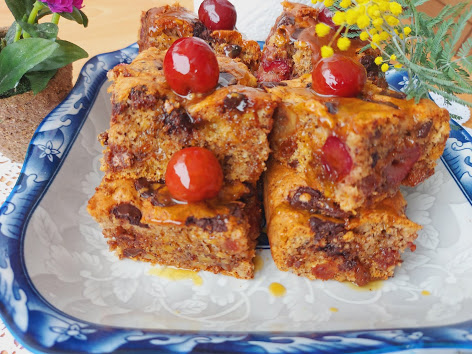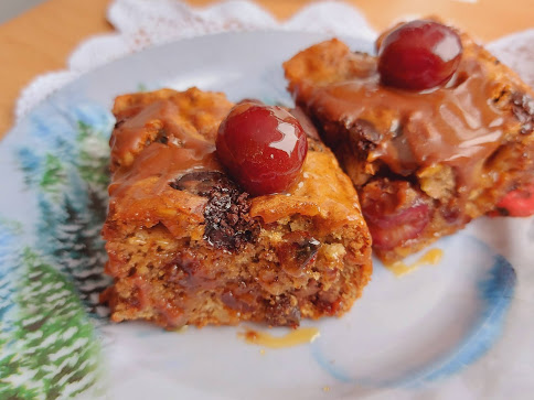 Odozgo poređati višnje ili trešnje i razbacati još neke čokoladne romboide ili slično.